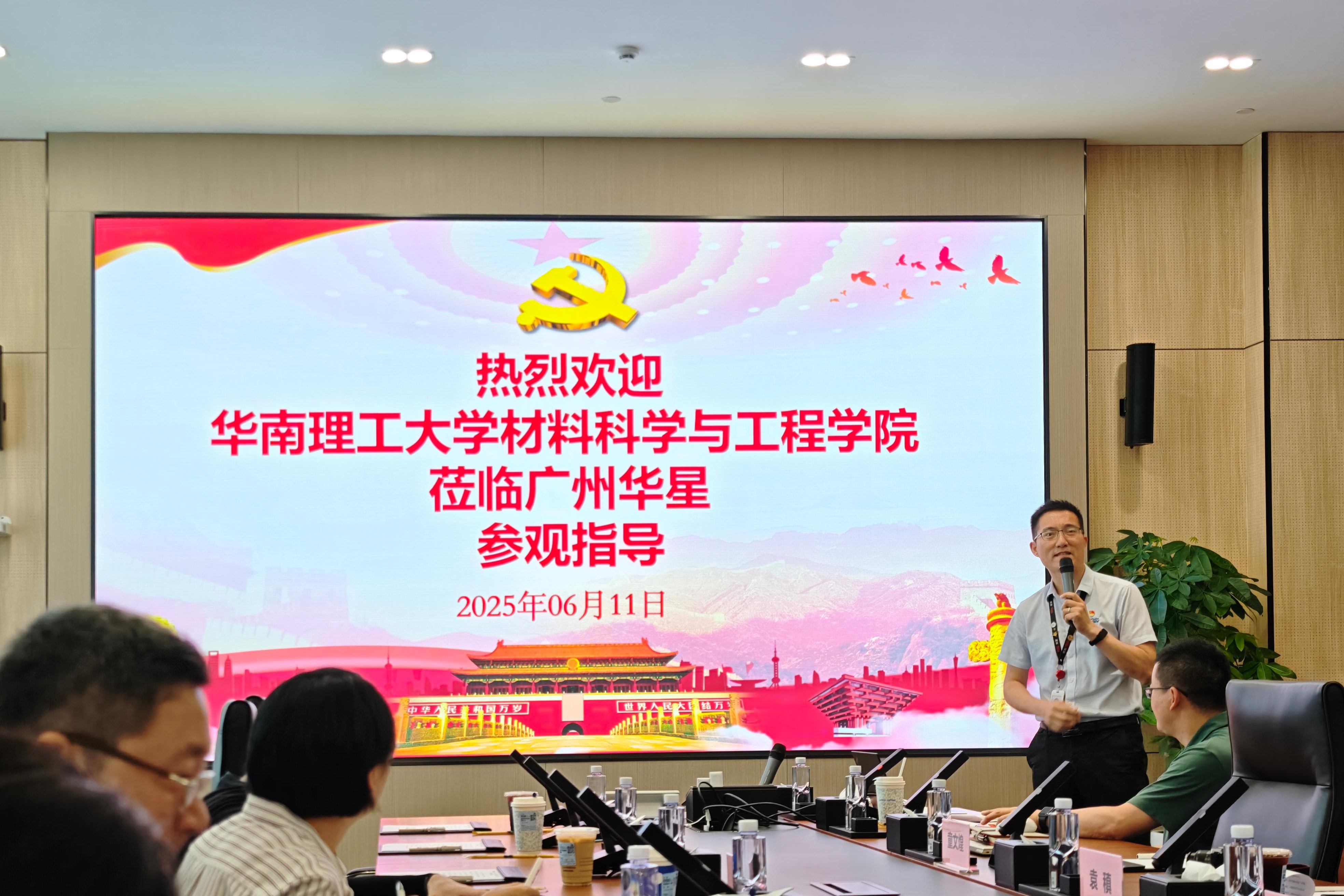 广州华星党总支熊梅书记对材料学院师生的到来表示热烈欢迎。她详细介绍了公司在显示技术研发、生产制造及市场应用方面的最新成就与发展规划,同时,她也期待借助高校的科研力量,共同推动显示材料技术的持续突破和产业升级,并在环保技术应用方面开展深入合作。