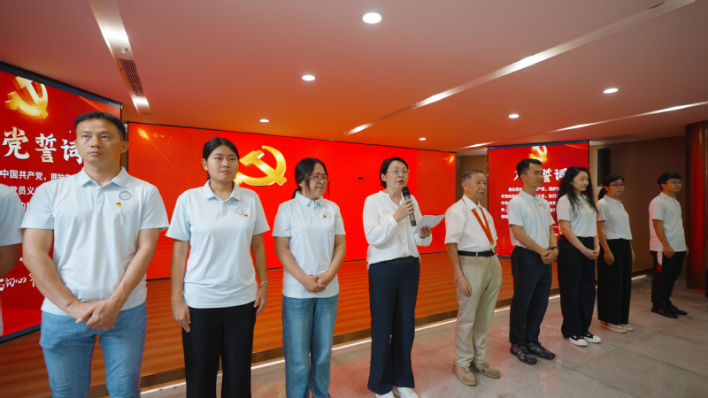 2025年7月1日,在中国共产党成立104周年之际,材料学院党委于“初心”校史馆隆重举行新党员入党宣誓仪式。本次活动以党性教育为核心,在深化中央八项规定精神学习的基础上,强化新党员的初心使命。材料学院第一任党委书记、光荣在党50年老党员刘登坤,学院副院长彭树立,党委副书记、纪委书记赵小芳,组织员乔湘楠,教学科研办公室副主任李楠,辅导员代表及新党员100余人参加活动。
