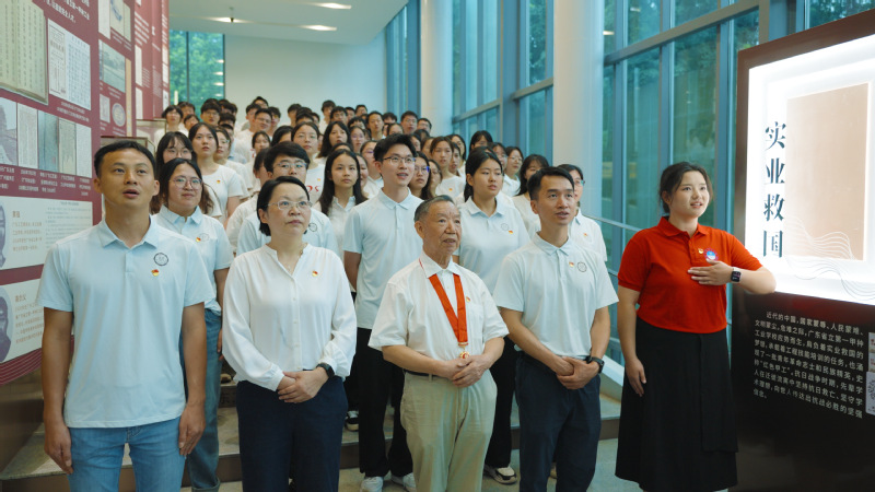 宣誓完毕,全体党员高声合唱《唱支山歌给党听》,用激昂的歌声抒发对党的无限热爱与忠诚,唱响“听党话、跟党走”的坚定决心。仪式尾声,新党员在讲解员引导下有序参观校史馆。从“甲工”先驱的报国志,到新时代材料人的创新路,历史与现实在此交汇,激励着青年党员以“笃行赓续”之姿,在科研攻关中勇攀高峰,在服务国家战略中彰显材料人的使命担当。