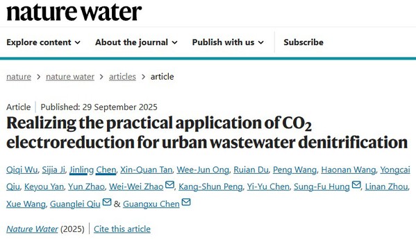 9月29日,以《Realizingthe practical application of CO2 electroreduction for urbanwastewater denitrification》为题,国际顶级期刊Nature Water在线发表了华南理工大学环境与能源学院陈光需教授和邱光磊教授团队的能源-环境融合研究成果,这也是环境与能源学院首次以第一作者单位在Nature Water上发表学术研究论文。