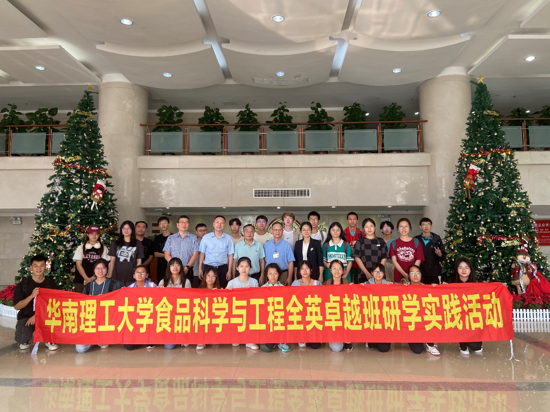 为更好建设食品科学与工程全英卓越班,让新生深入了解专业发展前景、发展方向以及其专业独特优势,2023年12月11日,2023级全英卓越班全体同学走进东莞数字化转型的标杆企业——徐福记国际集团,探索徐福记零食王国稳健增长的奥秘。全英卓越班班主任赵谋明教授、学院副院长黄强教授、系主任游丽君教授、副系主任刘鹏展博士、辅导员何豪洋、副班主任弘子姗博士带队此次研学活动。