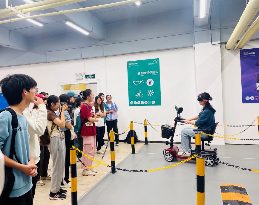 同学们还参观了徐福记安全体验馆。馆里设有醉驾模拟、卷机模拟、切机体验、夹机体验、火灾逃生模拟体验、高空作业体验等多个互动区。大家沉浸式地学习和体验安全知识,对生产安全的重要性有了更加深刻的体会。