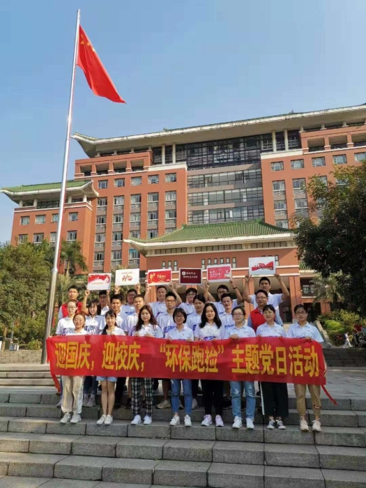“环保跑捡”活动是生化教工党支部、研究生第一党支部和本科生第一党支部共同开展的“不忘初心,牢记使命”主题党日活动,该活动不但宣传了环保理念,为校园的干净奉献了一部分力量,还为祖国母亲的生日,以视频的形式送了祝福,同时还为华南农业大学成立110周年送了祝福。