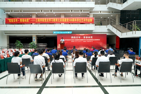 6月23日,工程学院在图书馆举行党史学习教育之庆祝建党100周年学生艺术作品展暨校友企业捐赠仪式。我校副校长咸春龙、广东富大陶瓷文化发展股份有限公司副总经理黄嘉铭等出席仪式。