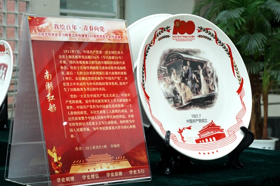 此次艺术作品展的全部作品都由工程学院工业设计系师生党支部设计完成。作品以中国传统瓷器为载体,以中国共产党百年来的典型历史事件为创作素材,通过百件绘画作品,讲述百个党史故事,讴歌中国共产党百年的奋斗征程和丰功伟绩。活动共征集手绘作品和电脑设计作品240余份,最终择优选取了100份作品,由校友企业广东富大陶瓷文化发展股份有限公司烧制成器,并捐赠给学校。该企业于2017年与我校工程学院工业设计系教工党支部、工业设计系本科生党支部签署了支部共建协议。