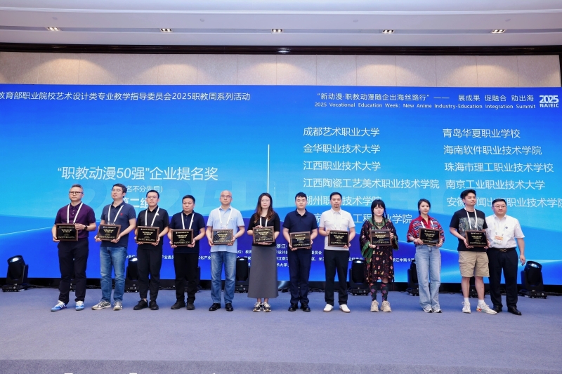 5月29日,大会举行教育部职业院校艺术设计类专业教学指导委员会“职教动漫 50 强”企业提名奖授牌仪式,我校代表上台接受授牌,该奖项旨在表彰在动漫职业教育领域产教融合成果突出、人才培养成效显著的院校。网易游戏、中南卡通、央视动漫集团等动漫企业代表与我校现场对接,标志着校企在人才培养、技术攻关等领域的合作进入实质化阶段。