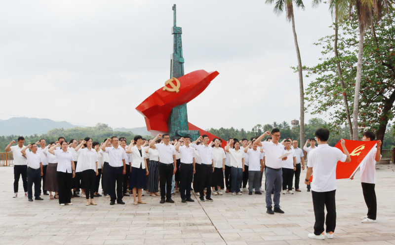 椰子寨战斗在琼崖打响了武装反抗国民党反动派的第一枪,树立起琼崖革命武装斗争的旗帜,成为琼崖革命武装斗争“二十三年红旗不倒”的开端。在这片红色基地,全体党员重温入党誓词,用铮铮誓言重忆了入党初心。