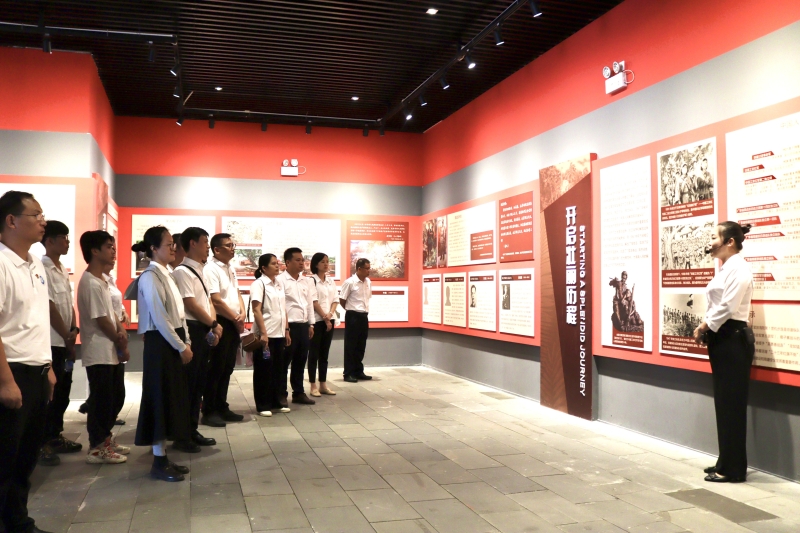 讲解员向党员们介绍了王文明、杨善集、陈永芹等革命先烈的生平事迹,详细叙述了琼崖纵队从无到有、发展壮大的光辉历程。随后,全体党员参观了主题雕塑、馆内陈列品等。通过图文资料,党员同志感受到那段波澜壮阔、艰苦卓绝的奋斗历程。