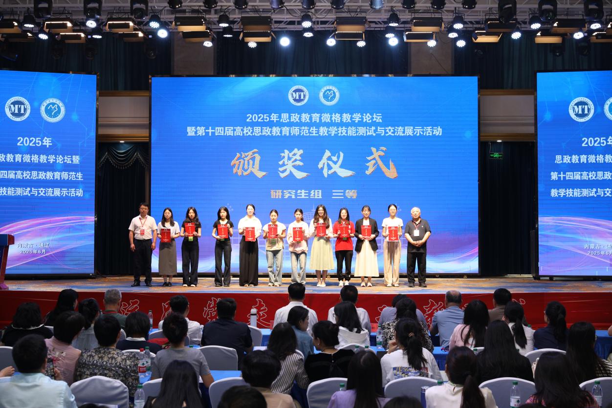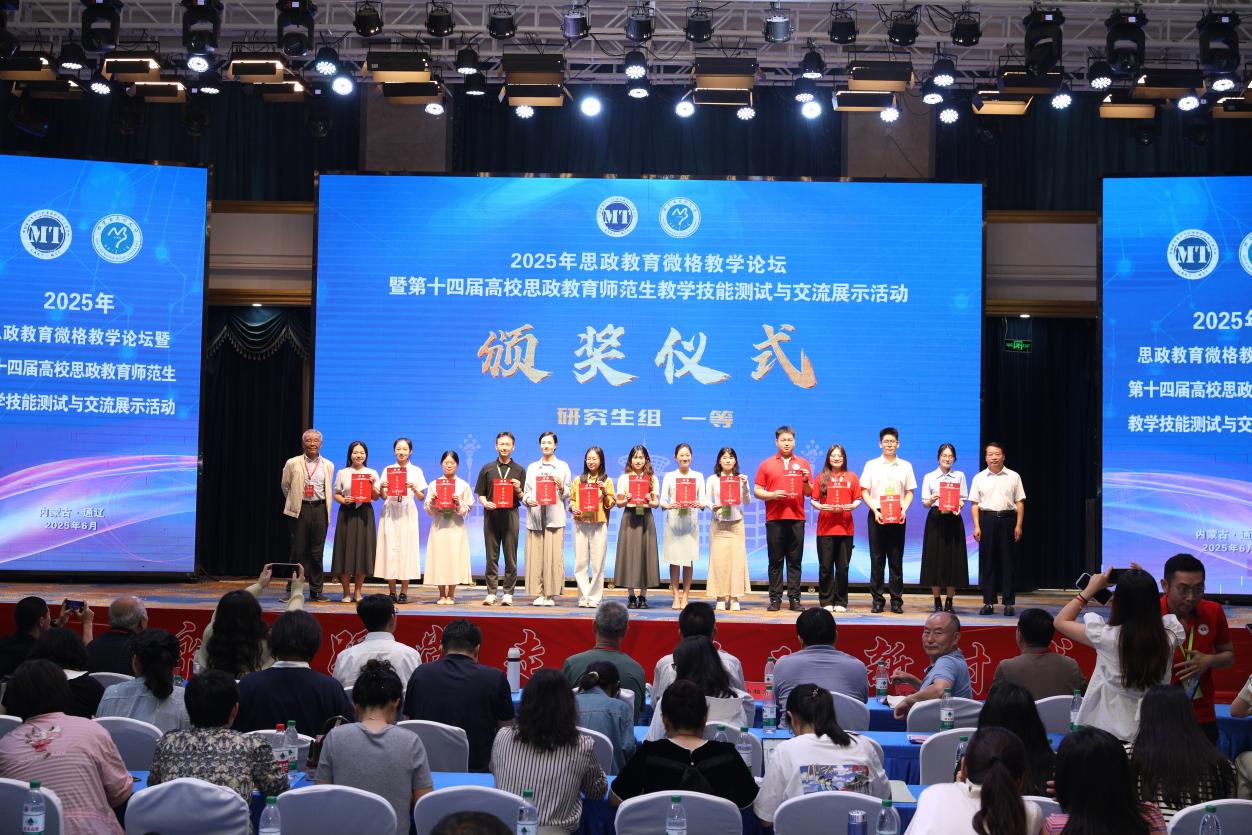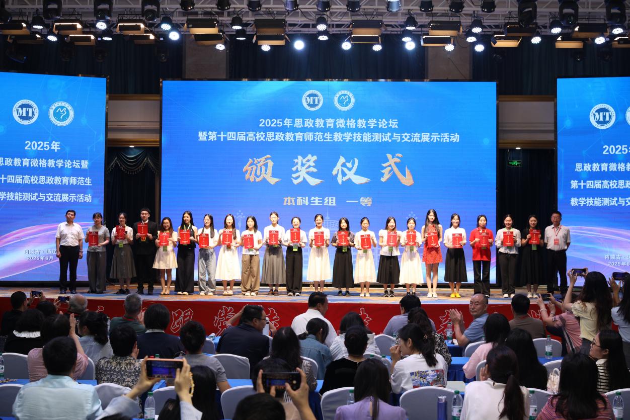 6月26日至30日,第十四届全国高校思政教育师范生教学技能测试与交流展示活动在内蒙古举行。来自全国97所师范院校的566名选手同场竞技。经过激烈角逐,我校马克思主义学院选派的学生团队表现卓越,斩获5项一等奖、1项三等奖。