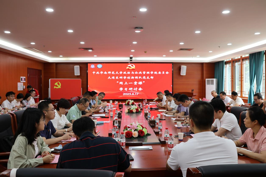 2025年6月17日下午,华南师范大学政治与公共管理学院大湾区研学创新团队党支部在学院208笃行会议室以“落实‘立德树人’根本任务,助力教育强国建设”为主题开展“同上一堂课”学习研讨会。学院党委书记许益锋、学院院长兼大湾区研学创新团队党支部书记杨爱平、学院党委副书记廖克环、副院长张伟坤和学院各师生党支部书记、大湾区研学创新团队党支部全体成员,以及我校大学城校园各学院党组织负责人和教师党支部书记代表均列席本次研讨会。本次活动由大湾区研学创新团队党支部副书记傅承哲同志主持。