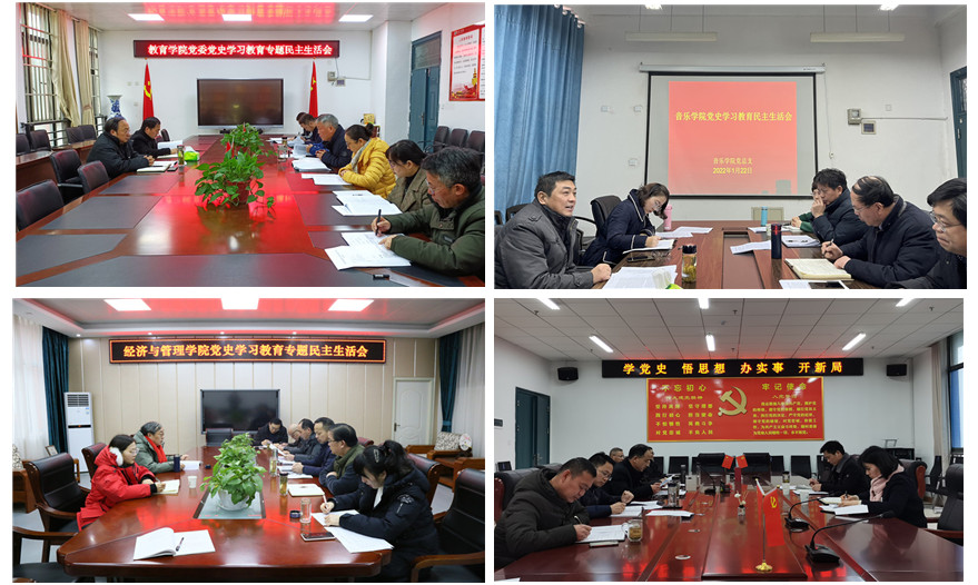 根据省委工作部署,按照学校党委统一安排,2022年1月22日至1月26日,学校各院系级党组织分别召开了党史学习教育专题民主生活会。会议以大力弘扬伟大建党精神,坚持和发展党的百年奋斗历史经验,坚定历史自信,践行时代使命,厚植为民情怀,勇于担当作为,团结带领人民群众走好新的赶考之路为主题,结合思想和工作实际,深入查摆突出问题,深刻剖析问题根源,严肃开展批评和自我批评,不断增强发现和解决自身问题的能力。