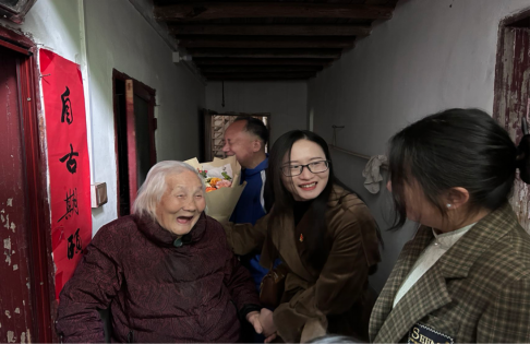 走访慰问过程中,师生们有幸见到了田波扬烈士的长媳——101岁的龙素伟老人。老人终身守护着这座萦绕红色精神的故居,传承着一代又一代的革命薪火。“他们好多人都要我住到镇上大房子去,我不去,我要住在这里、守好这里,你们要好好读书,要把田波扬的精神传下去……”龙奶奶紧紧握着段蜜老师的手谆谆叮嘱。守好革命薪火,传承红色精神,这,是她跨越世纪的守望!