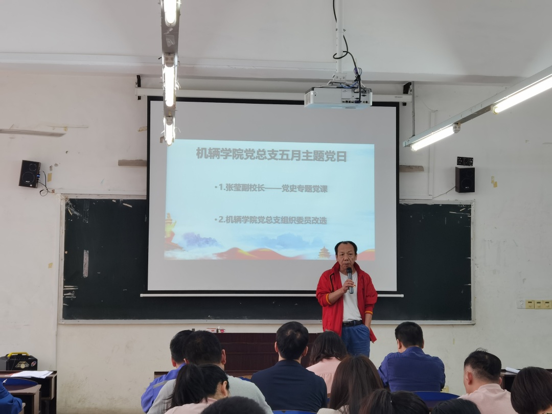 为扎实推动党史学习教育开展,引导全体党员学党史、悟思想、办实事、开新局,机辆学院党总支部五月主题党日活动于2021年5月27日下午2点在笃行楼206教室召开,学校副校长张莹、机辆学院党总支书记陈伟和机辆学院全体党员教师出席本次活动。