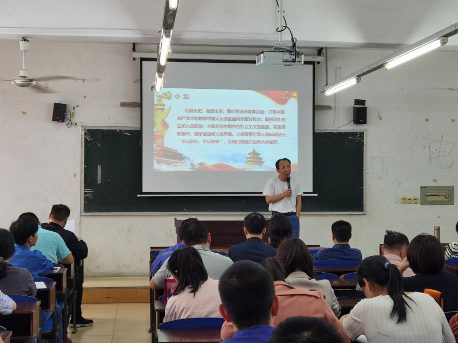 接着,张校长分别从新民主主义革命时期(1921年—1949年)、社会主义制度的确立及社会主义道路的探索(1949年—1978年)、改革开放和社会主义现代化建设时期(1978年—2021年)三个阶段讲述了中国共产党从无到有、从弱到强、干革命、搞建设、抓改革的百年辉煌,使广大党员看到了中国革命道路的曲折艰辛,感受到了党在关键时刻的力挽狂澜、不屈不挠的时代创举,学习了共产党人不畏牺牲、英勇奋斗的先进事迹。