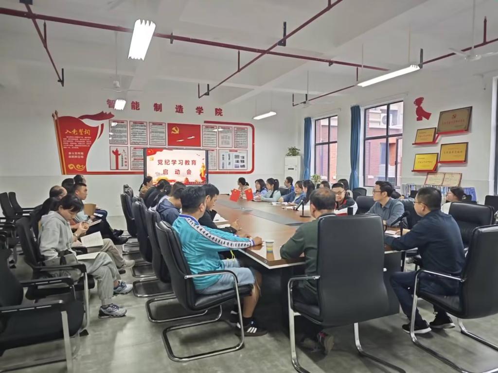 为深入学习贯彻《中共湖南铁道职业技术学院委员会党纪学习教育实施方案》,教育引导全体党员强化纪律意识、加强纪律建设、严守纪律规矩,提高廉洁自律能力,推动全面从严治党。制造学院党总支于4月25日下午在智能制造工业中心党员活动室425召开党员大会暨党纪学习教育启动会,会议由学院党总支书记汤劲主持并作学习动员讲话,总支全体党员参加。