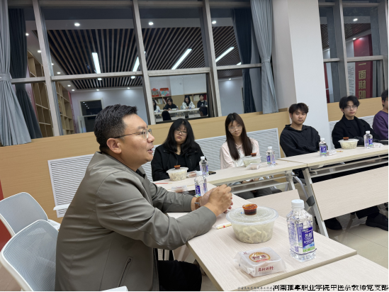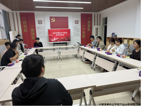 河南推拿职业学院中医系教师党支部作为第四批国家样板支部创建培育单位,在国庆中秋 “双节” 期间,紧扣 “七个有力” 核心要求,将党建工作与育人实践紧密结合,为留校学子送上暖心关怀 ——10 月 5 日下午,党支部书记宋朝功校长率先垂范,与留校学生代表开展 “庆双节・话成长” 交流座谈,同步配套开展包饺子、集体观影、文艺汇演等系列活动,以实际行动彰显支部担当。