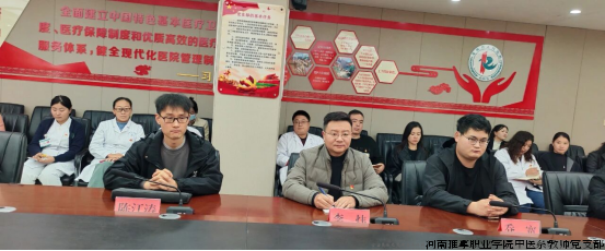 为深化校院党建共建内涵,激活党建引领育人新动能,近日,河南推拿职业学院中医系教师党支部书记李炜带领系团总支书记陈江涛、学生党支部委员陈曦,受邀赴汝州市人民医院(新四院),全程参与行管后勤第一党支部10月份主题党日活动。作为国家样板支部培育单位,我系教师党支部以此次共建为契机,积极探索“党建+校院合作”育人新模式,为中医药人才培养与行业发展注入协同力量。