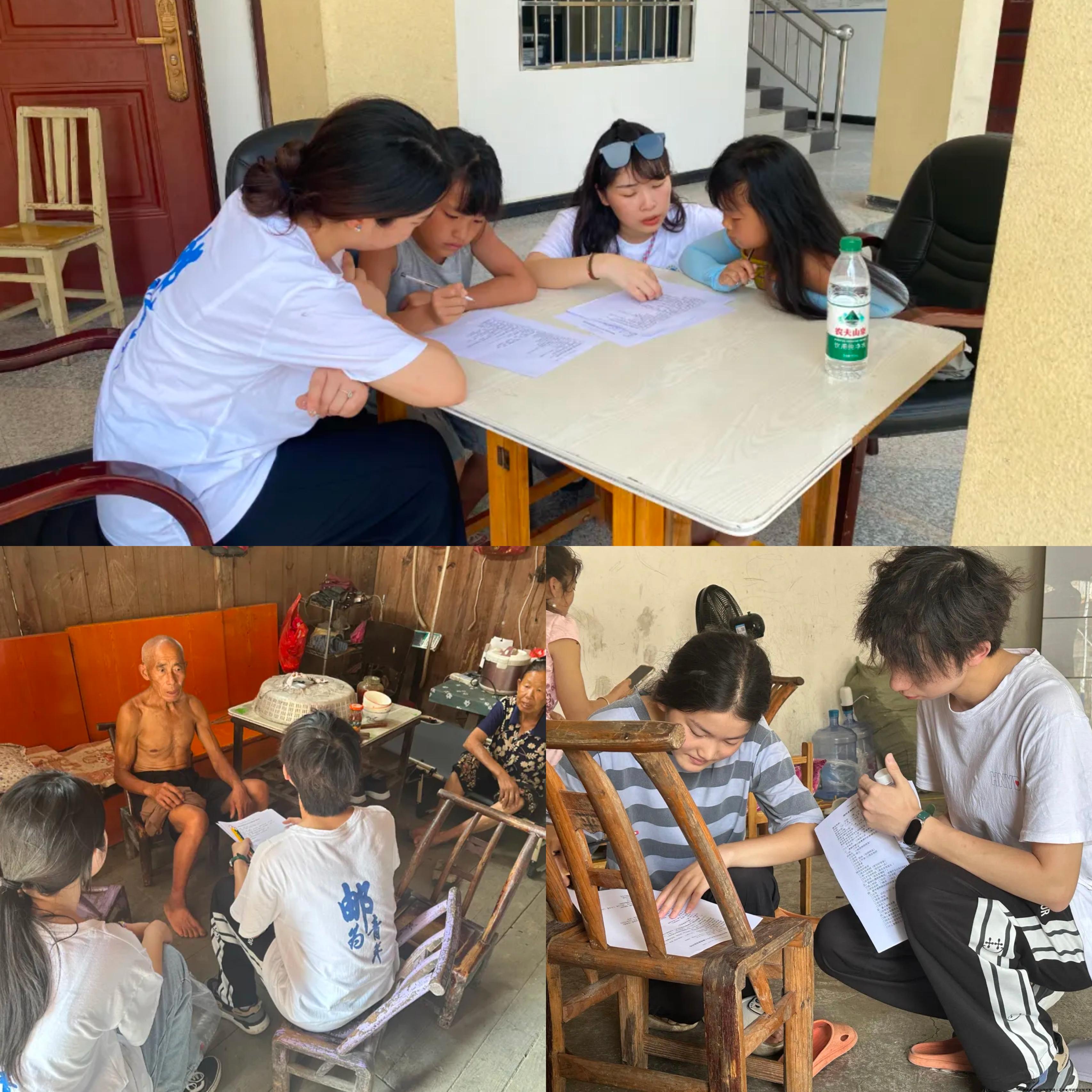 7月16-18日,实践团在湘西州三脚岩村、雨禾村、那丘村等8个村落开展了青少年与儿童心理健康现状调研。以问卷调查与走访调研的方式,全面了解当地留守儿童、困难青少年的生活状况和心理状态。问卷内容广泛,涵盖基本信息、家庭、学习、情绪及社交等方面,旨在全面评估孩子们的心理需求;走访中,队员们走进各户与儿童及家长深入交流,了解学生家庭的亲子关系和家庭状况,并给予情感支持和心理疏导。