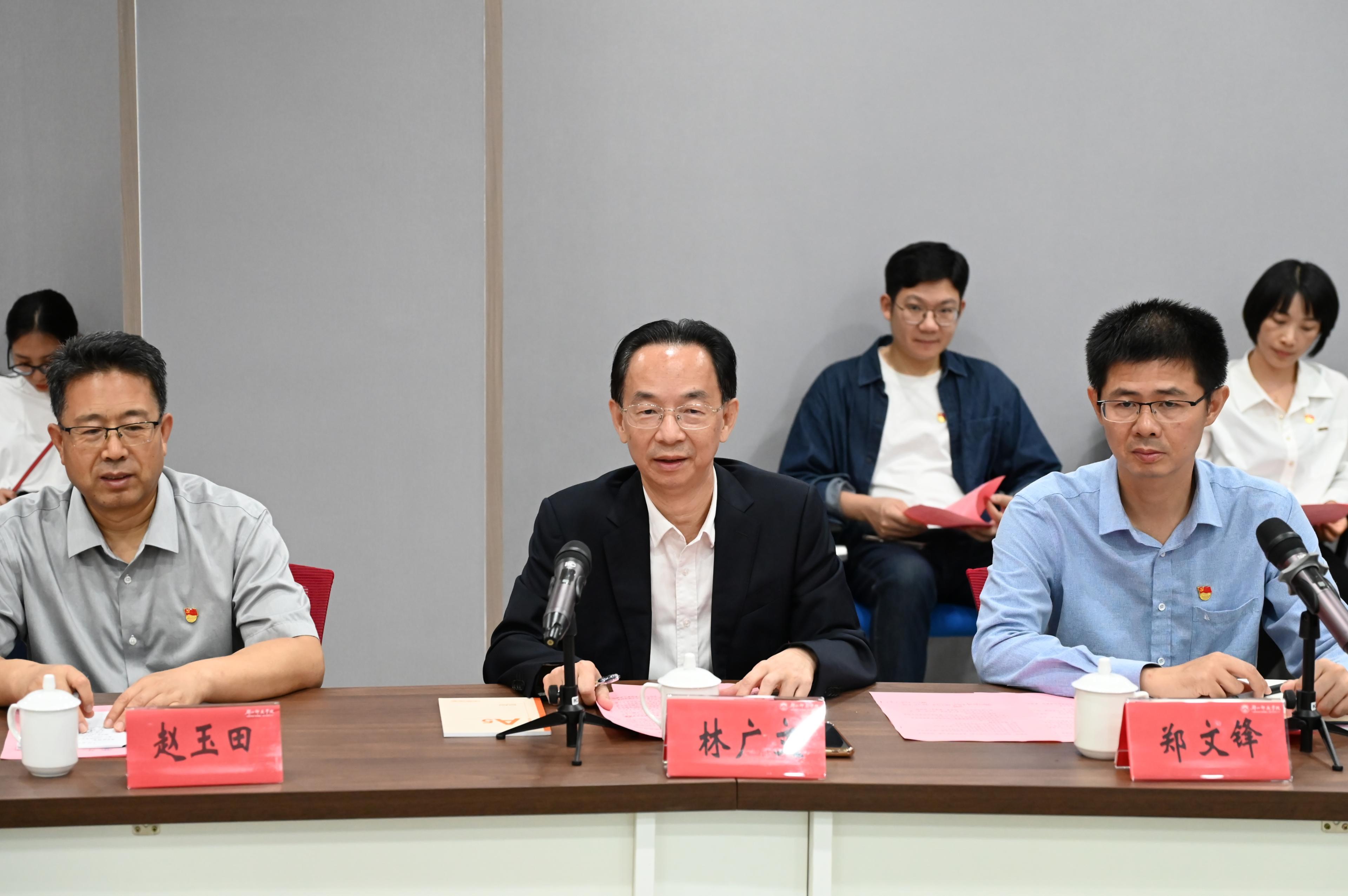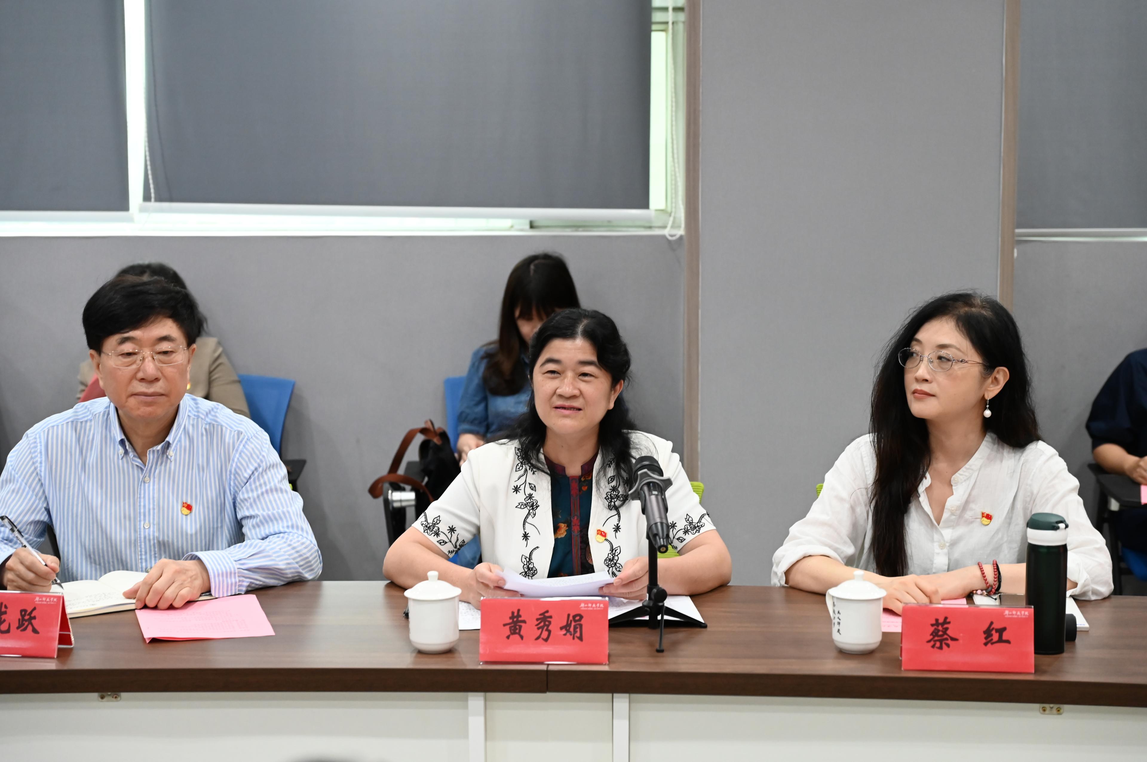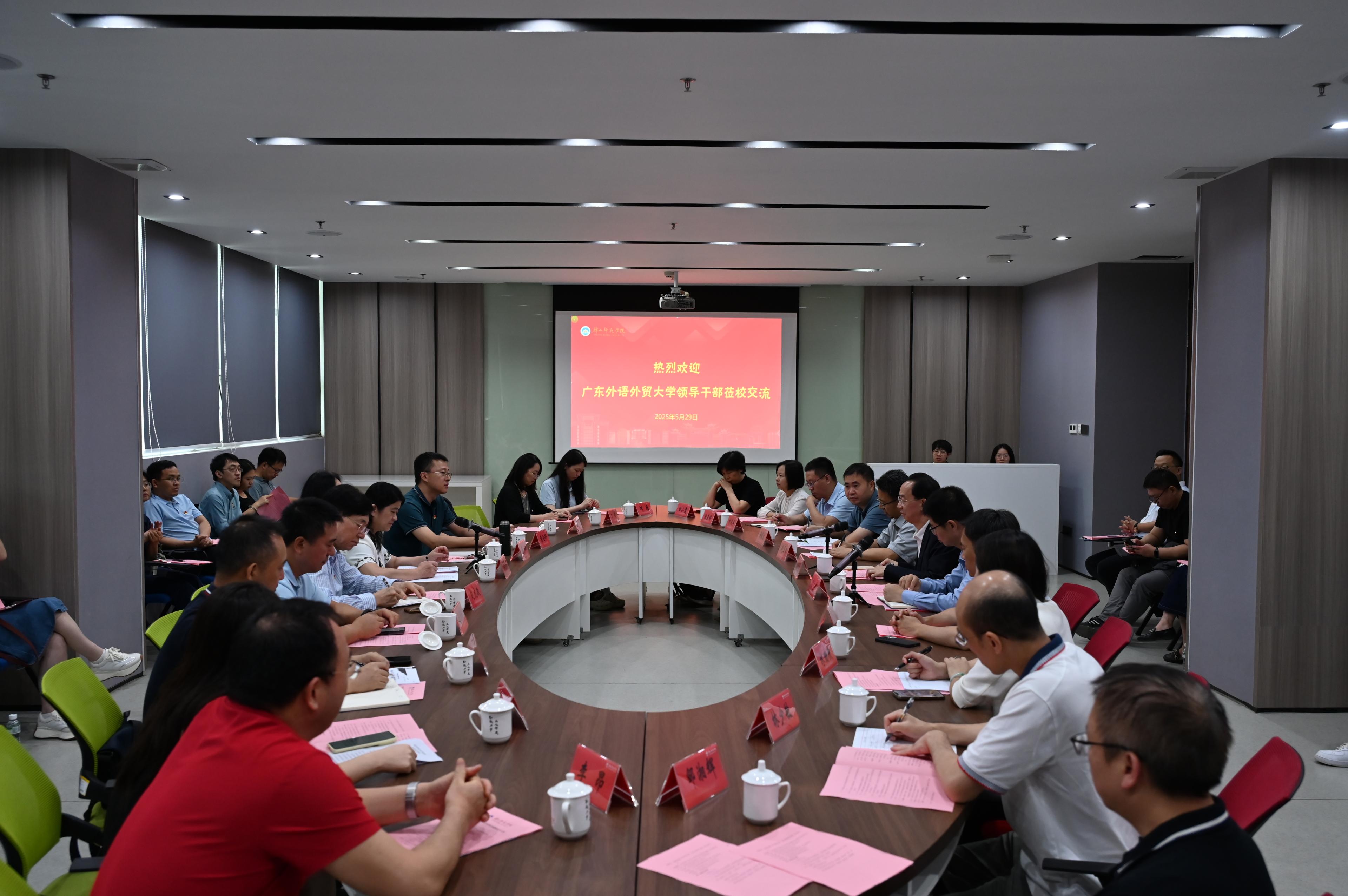5月29日,广东外语外贸大学党委常委、组织部部长黄秀娟一行来我校开展“同行·联学·共进”主题党日活动,我校党委副书记林广文出席活动。双方在图书馆二楼会议室就党建工作进行座谈交流。