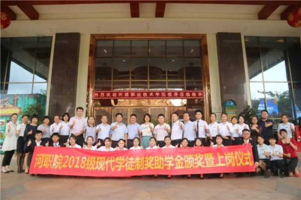 当天,还进行了河职院•客天下2018级现代学徒制精英班奖助学金颁奖暨上岗仪式,河职院副校长袁光华、工商管理学院院长俞彤,鸿客集团总裁助理张小山、董事长助理兼管理中心总监曾金杰等出席颁奖仪式。
