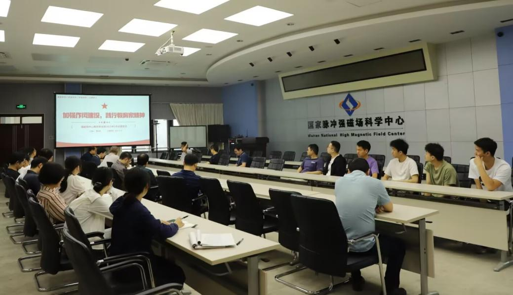 会上进行了全国党建样板党支部培育进展的中期总结。曹全梁汇报了样板党支部工作的培育进展,提出了下一阶段的工作重点安排。强磁场中心教师党支部在严格落实“三会一课”制度、加强政治把关引领作用、探索与实践创新工作方法等重点工作上都取得了不错的进展。下一阶段重点要深化“两个示范”建设,强化党建引领与科研攻坚协同效应,并提升党建引领的宣传力度,形成可复制、可推广的典型经验,达到样板党支部的培育目标。