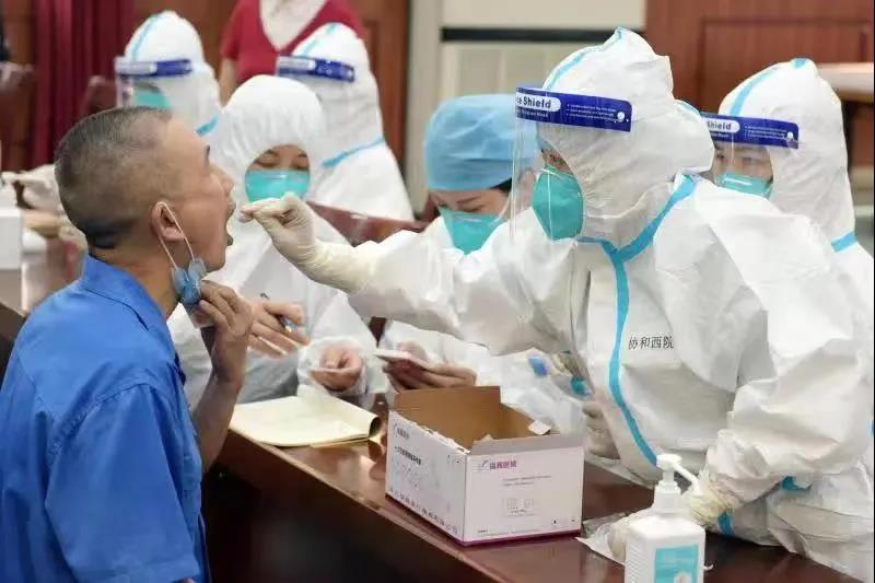 当前,协和医院、同济医院还有更多医护人员正奔赴武汉全员核酸采集的各个现场。