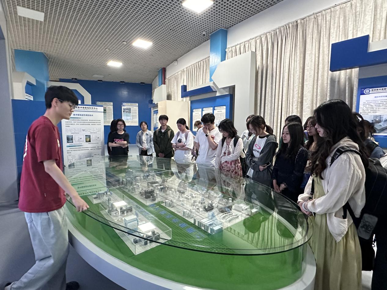 在中心志愿讲解员的带领下,同学们进入国家脉冲强磁场科学中心,了解了脉冲强磁场实验装置的运作流程、强磁场实验装置的建设历程与成果,以及脉冲强磁场技术在生活各领域中的运用。随后,同学们随着讲解员来到中心的电源大厅,近距离感受国家重大科技基础设施的创新脉动。