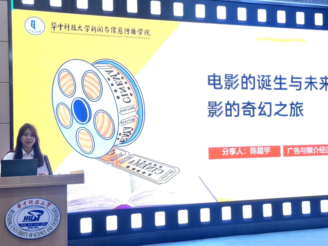 新闻与信息传播学院广告与媒介经济专业硕士生党支部陈星宇同学分享了《电影的诞生与未来:电影的奇幻之旅》。她向同学们介绍了电影制作的视觉暂留原理、电影的有声革命与彩色革命,并以电影《阿凡达》为例展示了电影特效的发展。最后,她带领同学们回顾了中国电影的逆袭之路,从早期的《定军山》《歌女红牡丹》,到如今的《流浪地球》《哪吒》,中国电影的国际影响力不断提升。