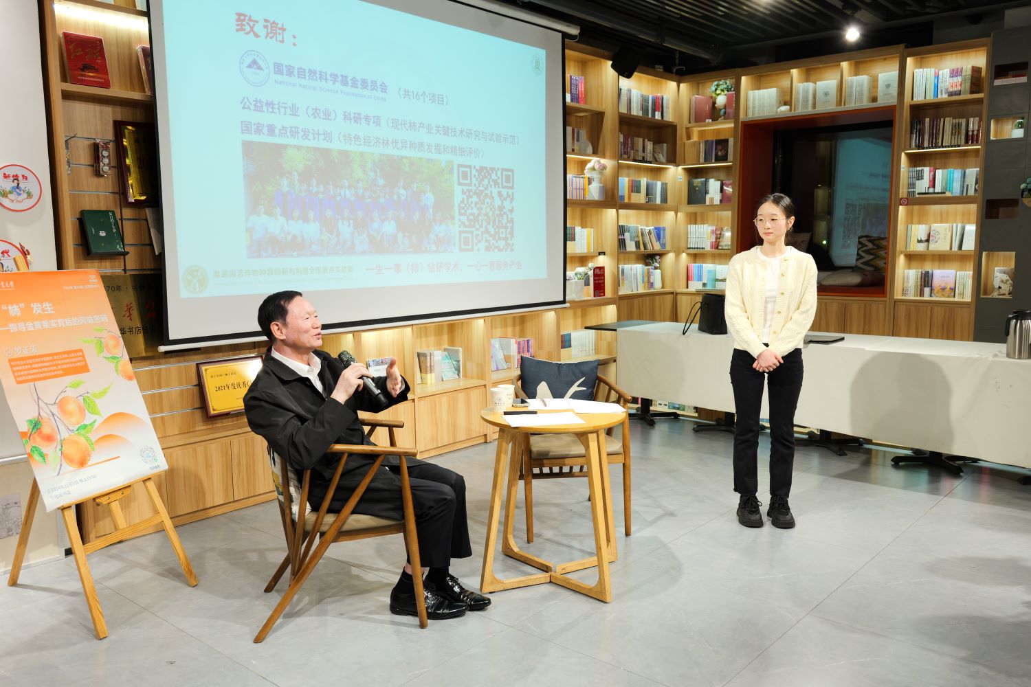 近日,以“好‘柿’发生——探寻金黄果实背后的风味密码”为主题的学术晚茶活动在倍阅书店举行。园艺林学学院罗正荣教授与研究生们共同探讨交流柿子甜蜜风味背后的分子奥秘。