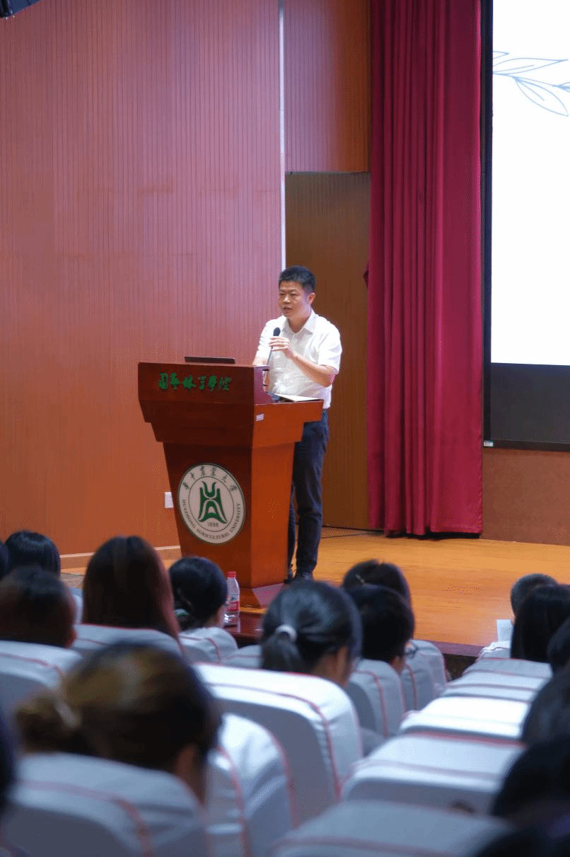 博士后刘胜军分享了研究生生涯中成长经历与心得,从六年前的台下学习者到如今的分享者,他见证了华农在果树学领域的显著突破。通过科研漫谈的形式,鼓励新生们温故知新,汲取前辈经验,激发科研热情。