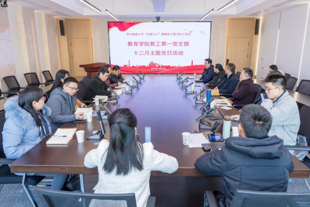 12月21日下午,教育学院教工第一党支部12月份主题党日活动在田家炳901室开展。华中师范大学党委常委、副校长李鸿飞,教工第一党支部党员等参加本次党日活动,活动由支部组织委员伍远岳主持。