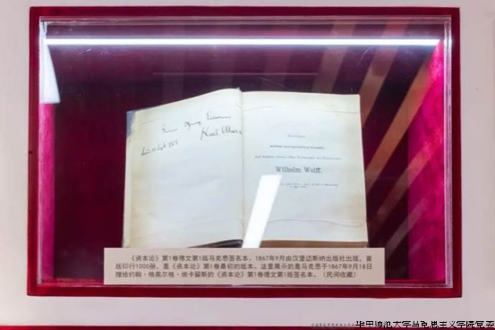 《资本论》是马克思主义最厚重、最丰富的著作,揭示了资本主义社会的经济运动规律和资本主义产生、发展和灭亡的历史规律,论证了资本主义被共产主义取代的历史必然性,为科学社会主义奠定了理论基础。《资本论》1867年问世以来,在全世界广泛传播,显示出强大的生命力,经受住时代的考验,始终闪耀着真理的光辉。展览中,1938年郭大力、王亚南耗时十年的全译本《资本论》成为革命年代的“理论火炬”。王亚南于1922年考入华中师范大学前身之一的武昌中华大学教育系,于1926年毕业。毛主席曾先后四次集中研读《资本论》,这里还展示了毛主席钤印的《资本论》。