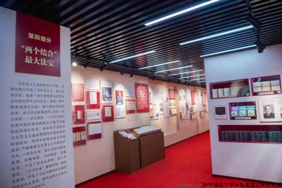第三展馆:华中师范大学马克思主义学院成果展。本展览以成果证书、著作教材、视频资料等立体展示马克思主义学院事业发展成果。