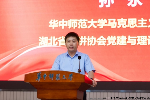 会议伊始,华中师范大学马克思主义学院党委书记、湖北省演讲协会党建与理论宣讲专委会主任孙永祥作《踔厉奋发,勇毅前行,当好新时代理论宣讲轻骑兵》的致辞。他指出,“总书记的荆楚足迹”宣讲应该成为学习全会精神的轻骑兵队伍,成为扎实推进二十届三中全会精神学习的重要抓手,我们要将理论与实践相结合,用老百姓听得懂的话语开展理论宣讲,帮助大家增强“四个意识”、坚定“四个自信”、做到“两个维护”,并提出新时代青年人要心怀国之大者、紧跟时代脚步、坚持守正创新。