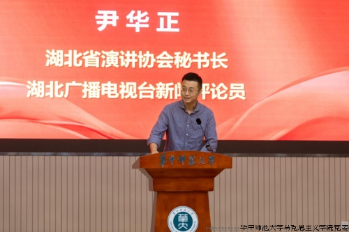 湖北广播电视台新闻评论员、湖北省演讲协会秘书长尹华正作“总书记的荆楚足迹”示范宣讲。他用五张图片将总书记的荆楚足迹串联起来,通过总书记的五个考察故事,讲述了总书记对湖北科技创新、生态保护、粮食安全、人民群众工作等作出的重要指示。