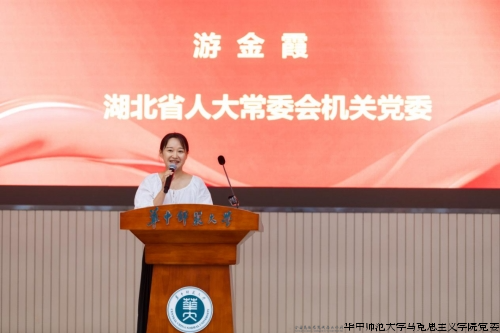 湖北省人大常委会机关党委青年干部、省人大常委会机关“人民代表大会制度在湖北”展示厅青年志愿者讲解队队长游金霞作了《人民至上》主题宣讲。她通过自己在工作岗位上的两个小故事,还原了总书记在湖北考察时体现的人民至上理念。