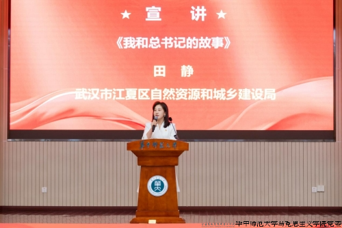武汉市江夏区自然资源和城乡建设局宣传办、团委负责人田静作了《我和总书记的故事》主题宣讲。她通过讲述自己在工作岗位上偶遇习近平总书记在湖北考察的亲身经历,作为一名普通工作人员得到总书记的握手,让观众从平凡的细节中感受到总书记对人民群众的切身关爱和对国家发展所作的无私奉献。