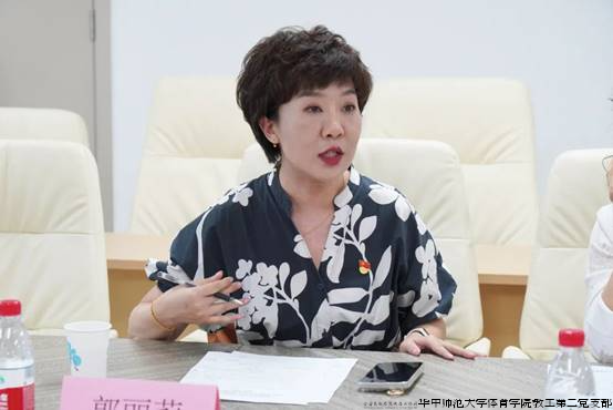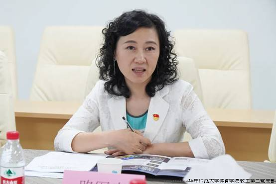 陈莎莉介绍广东财经大学基本情况,以及湾区影视产业学院办学历程、学科特点和党建引领事业发展情况。她表示,学院立足广东,服务湾区,面向世界,以党建为抓手,推动产教融合、产创融合、产研融合取得新成效,未来,希望与华师体育学院加强党建联建,寻求跨学科共建共创结合点。
