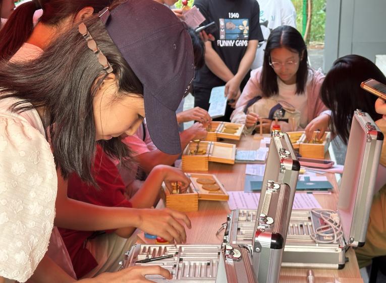 在活动的持续进行期间,众多学子纷纷莅临,对展示的实验仪器表现出浓厚兴趣,并聆听老师们的专业阐述。同时,他们积极参与心理学游戏的挑战,活动摊位四个小时的时段内,始终热闹非凡。