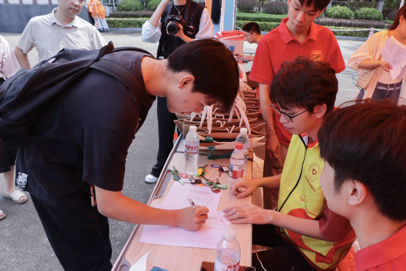 迎新当天,党员志愿者们早早来到现场集合,佩戴上象征责任与奉献的党徽,忙碌的身影穿梭于校园的各个角落。
