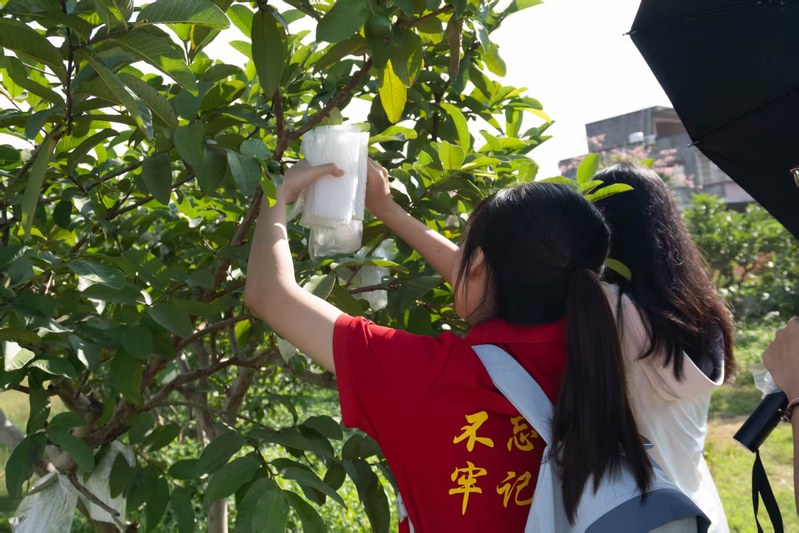 在芭乐果园,技术员详细讲解套袋重要性和操作步骤,师生们学习芭乐套袋技巧,为芭乐树上的果实套上保护袋,细心呵护果实成长。紧接着,大家参与芭乐采摘,欣赏着一串串饱满的芭乐,齐心协力将果实采摘下来,装入篮中,感受收获的喜悦。