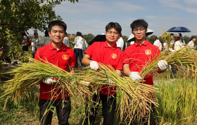 在金黄的稻田中,师生们手握镰刀,开始了水稻收割实践。农技人员讲解了割水稻的技巧,师生们分组展开收割,稻田里洋溢着欢声笑语。收割完成后,大家体验了脱谷过程。脱谷机声轰鸣,谷粒飞溅,师生们脸上洋溢着丰收的喜悦。这一过程让大家深刻体会到“谁知盘中餐,粒粒皆辛苦”的质朴真理。活动尾声,师生们仔细清理场地,归还工具,确保环境整洁。