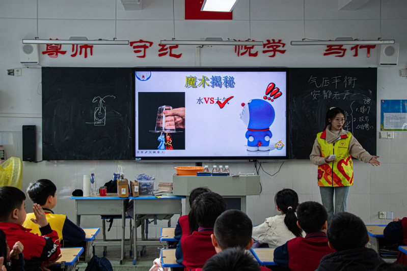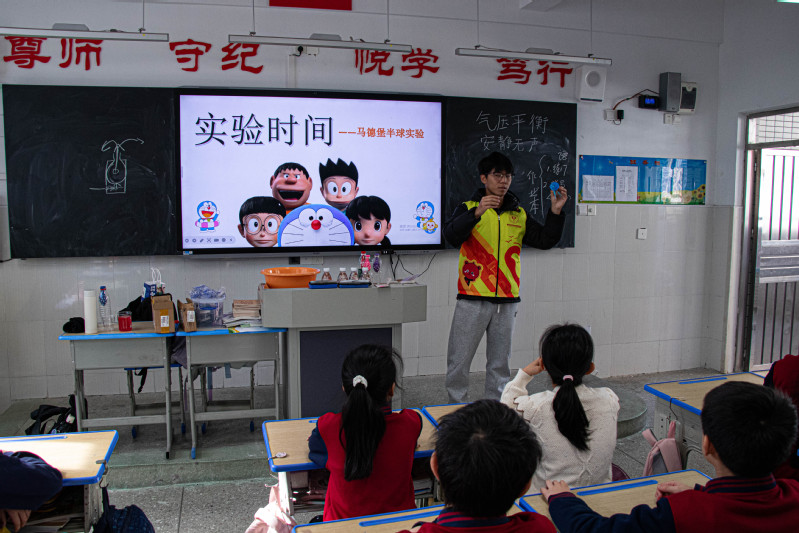 科学实验展示中,志愿者通过“倒立水杯”的小实验开启对大气压强的探索之旅。当水杯倒转而纸片紧贴杯口时,孩子们睁大双眼,充满好奇。志愿者以“这不是魔法,是空气在帮忙”生动揭秘,并带领学生用吸盘重现马德堡半球实验,让抽象的物理原理化为可触可感的实践认知,激发探究热情。