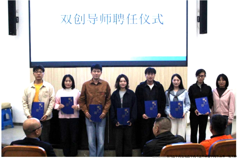在全场的见证下,会议举行了隆重的双创导师聘任仪式。此次聘任将行业骨干力量纳入学院双创导师团队,为学院双创导师队伍注入新鲜血液,也为校企双方进一步深化合作奠定了坚实的人才基础,标志着学院在党建引领下的产教融合双创育人模式迈出实质性步伐。