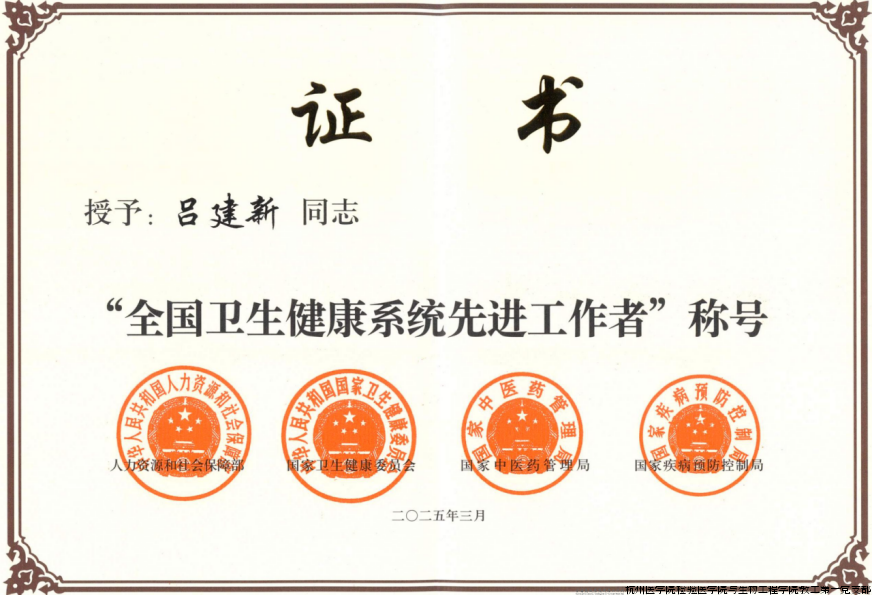 吕建新教授获“全国卫生健康系统先进工作者”称号
