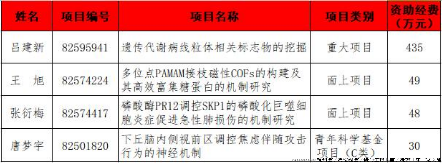 圆满完成医学技术专业硕士学位点首次招生;获批国家自然科学基金4项(其中重大项目1项)、省自然基金3项(其中重大项目1项);发表学术论文37篇,其中SCI论文29篇(含中科院1区11篇、2区12篇);获授权发明专利3项。