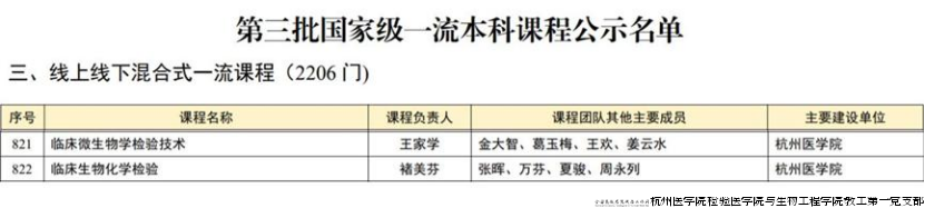 褚美芬教授主持《临床生物化学检验》课程入选国家级一流本科课程