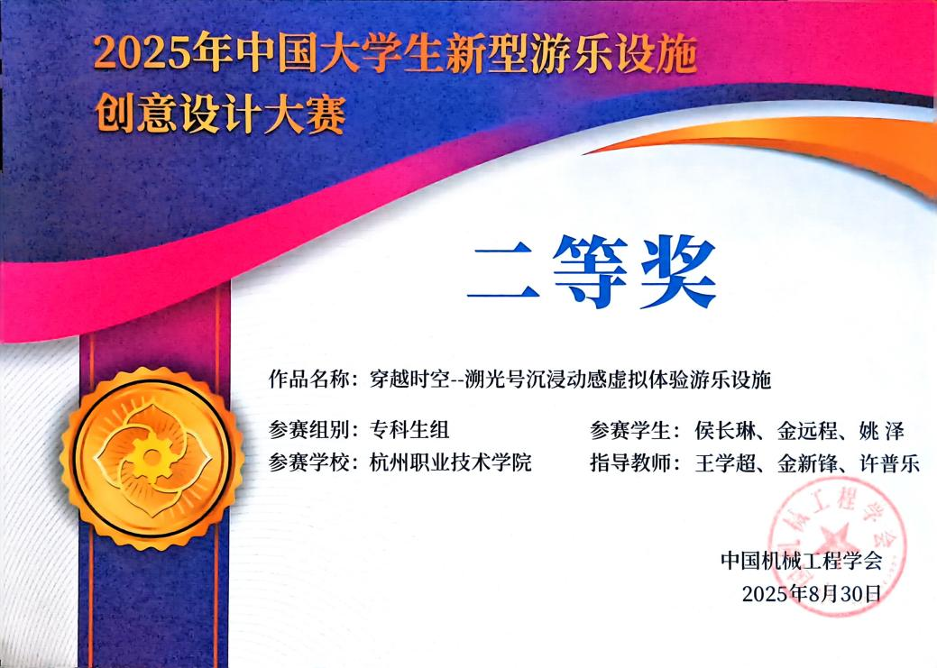 8月28日至30日,首届中国大学生新型游乐设施创意设计大赛全国总决赛在郑州方特圆满落幕。杭州职业技术大学特种设备学院第二党支部教师团队在此次大赛中表现突出,斩获专科生组一等奖1项、二等奖1项。