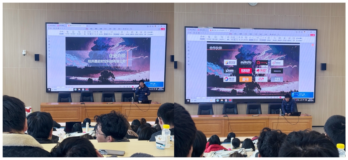 宣讲会详细介绍了杭州墨启时空科技有限公司作为一家拥有网易核心团队基因的专业游戏美术服务商,与腾讯、网易、米哈游、莉莉丝等一线游戏大厂深度合作的行业背景与项目实力。本次招聘聚焦游戏产业核心美术岗位,共释放游戏动画师(20名)、游戏绑定师(10名)、游戏模型师(7名)、游戏特效师(15名)等多个优质岗位,为我院相关专业学子提供了直通国内顶尖游戏项目的一线实践与就业机会。企业代表详细解析了各岗位的技术要求(如3ds Max、Maya、ZBrush、UE等软件应用)与职业发展路径,展示了游戏美术从模型、绑定、动画到特效的全流程制作体系,其参与的《暗黑破坏神》、《明日方舟》、《万国觉醒》等知名项目案例,极大激发了同学们投身数字创意产业的热情。