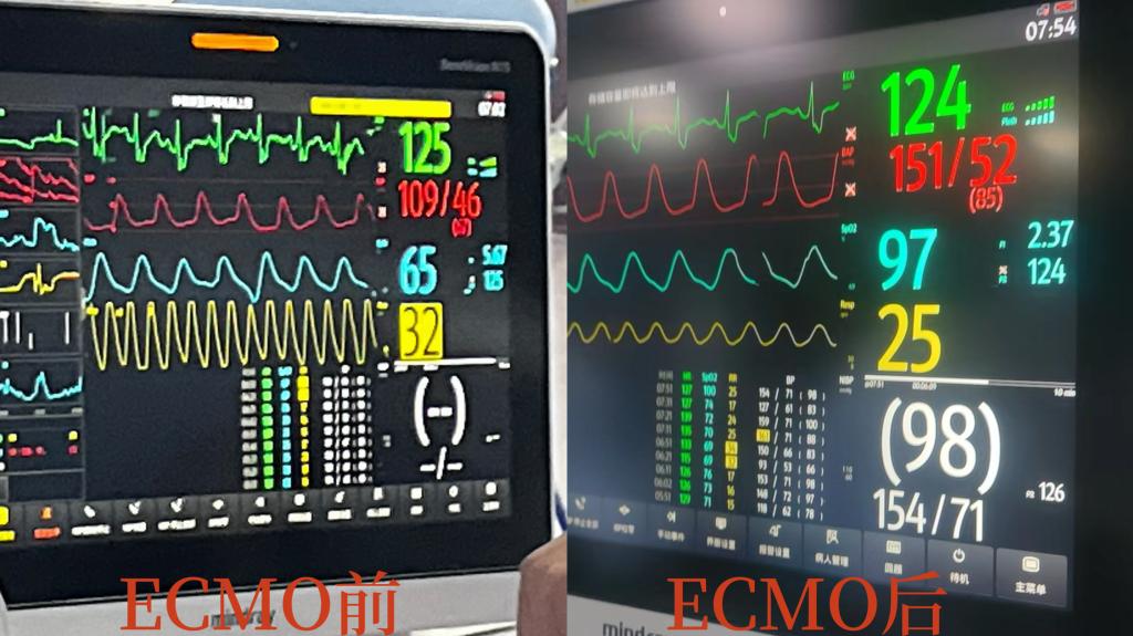 ECMO成功启动并运行稳定,患者血压及血氧较前明显改善,生命体征稳定后,团队决定紧急转运病人。